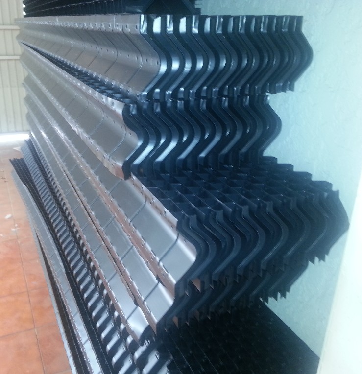 Eliminadores de rocío en material de PVC, marca brentwood, alta eficiencia de perdida de arrastre del orden de 0.005% con nuevo diseño, dimensiones de 5 1/4"x1'x8'
