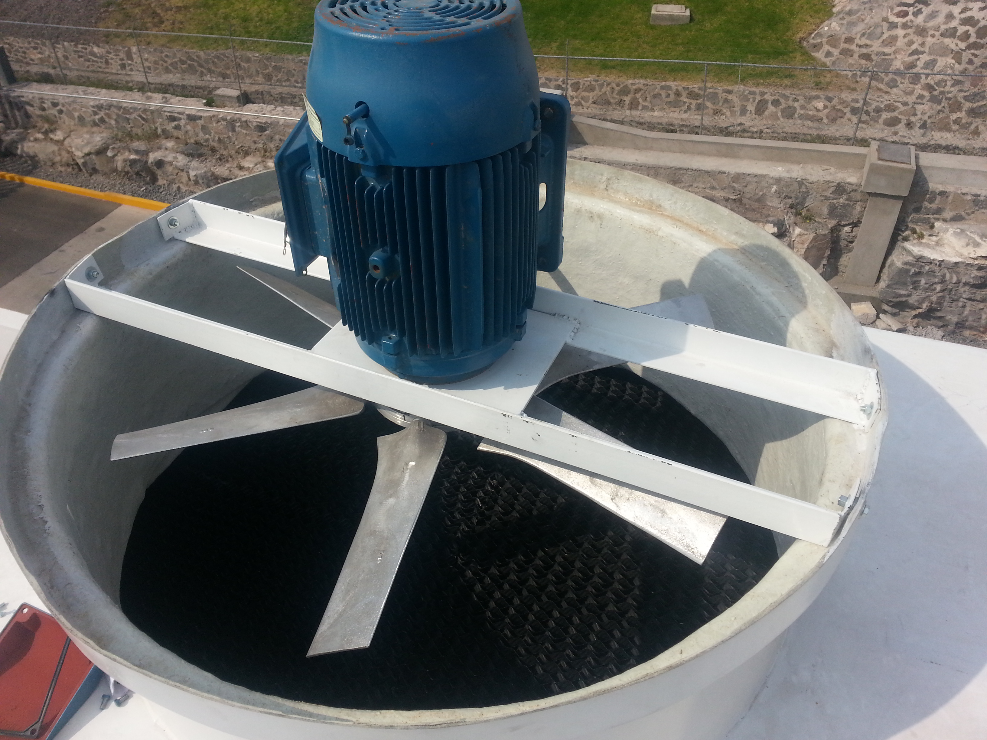 Ensamblaje de motor-ventilador en torres paquete en fibra de vídrio.