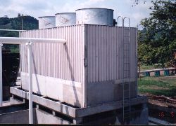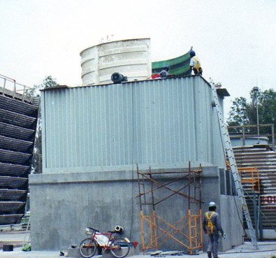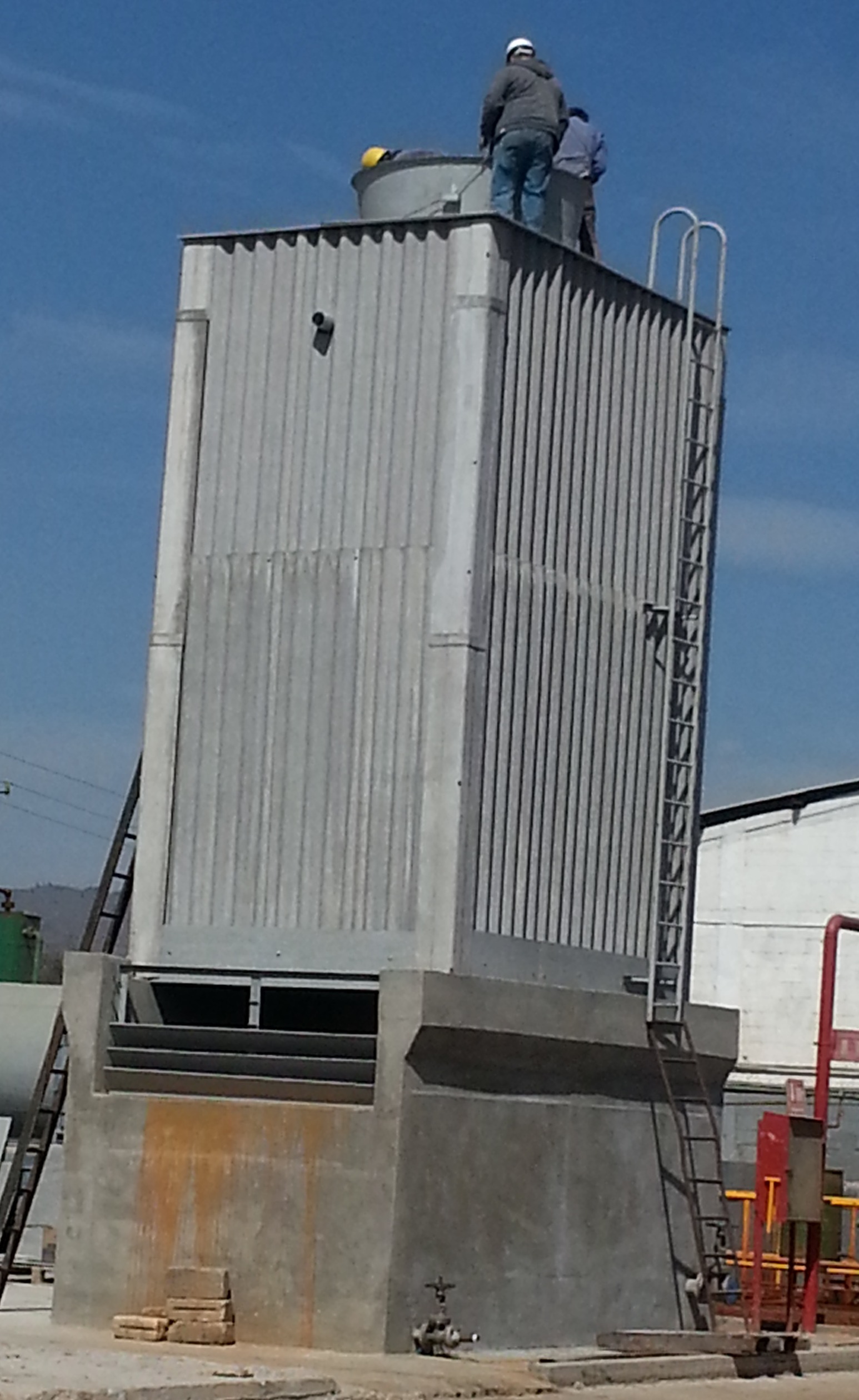 Torre de estructura en AC Galvanizado por inmesión en caliente, relleno de cerámica, forros de asbesto-cemento, para menjo de agua caliente con temperatura de 70° C en compresores y estaciones de bombeo.