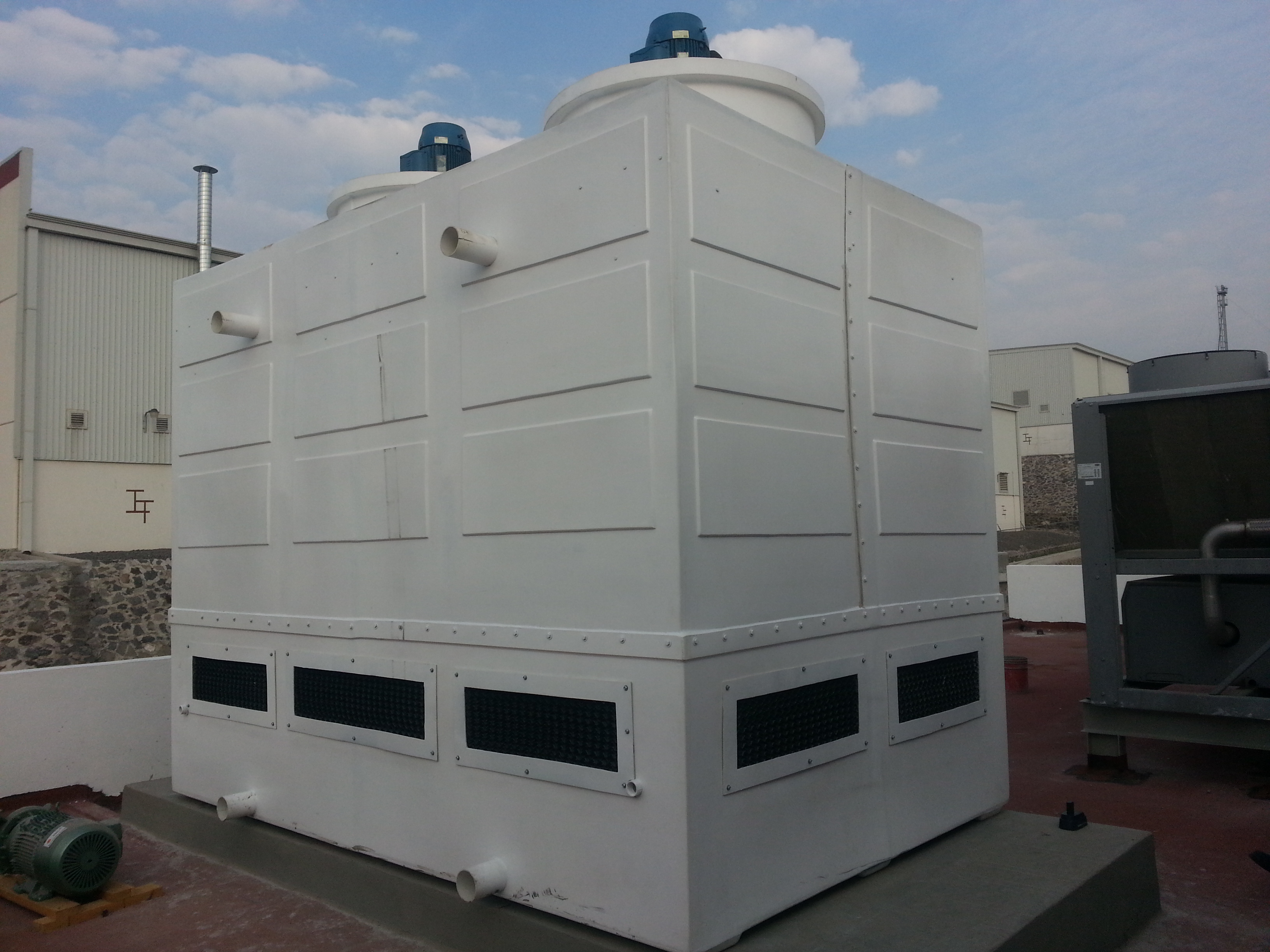 Torres Paquete Mixta en material de fibra de vídrio, con intercambiador de tubería de cobre.