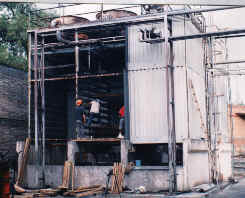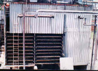 inoxidable, forros y chimenea en fibrade vidrio. Relleno de PVC, con ventiladoresde 16' de diámetro para manejar 8500 GPMen la industria petroquímica.